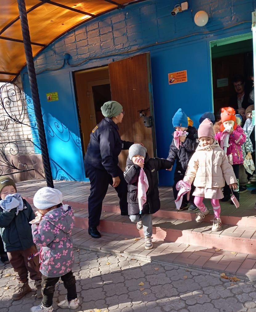 2025-2026 оқу жылына арналған жылдық жоспарға сәйкес "Қарлығаш" балабақшасында өртке қарсы қауіпсіздік бойынша оқу-жаттығу өтті.