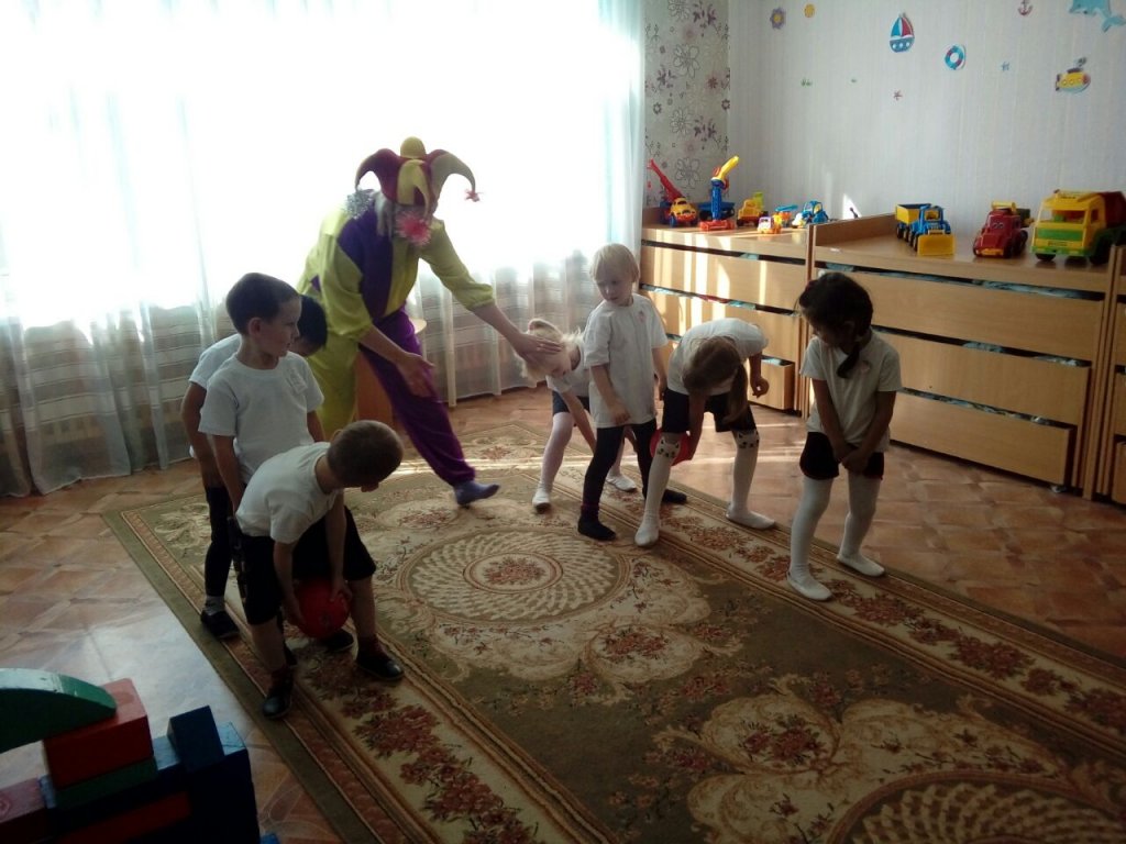 Сидя на мяче, каждый ребенок по очереди, должен